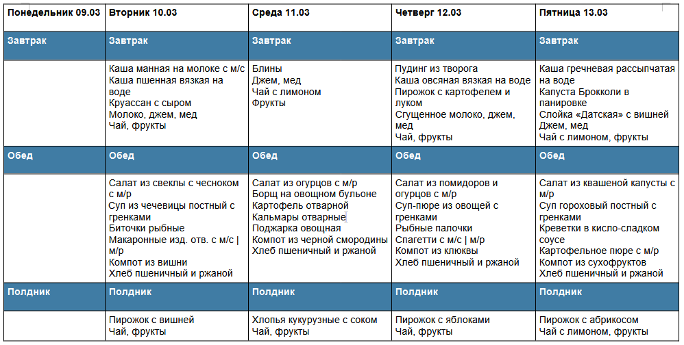 Неделя с 9 по 13 марта